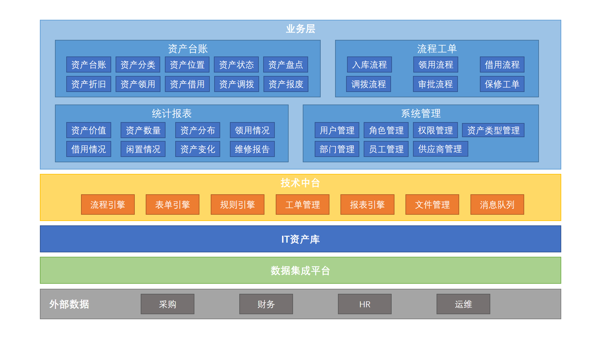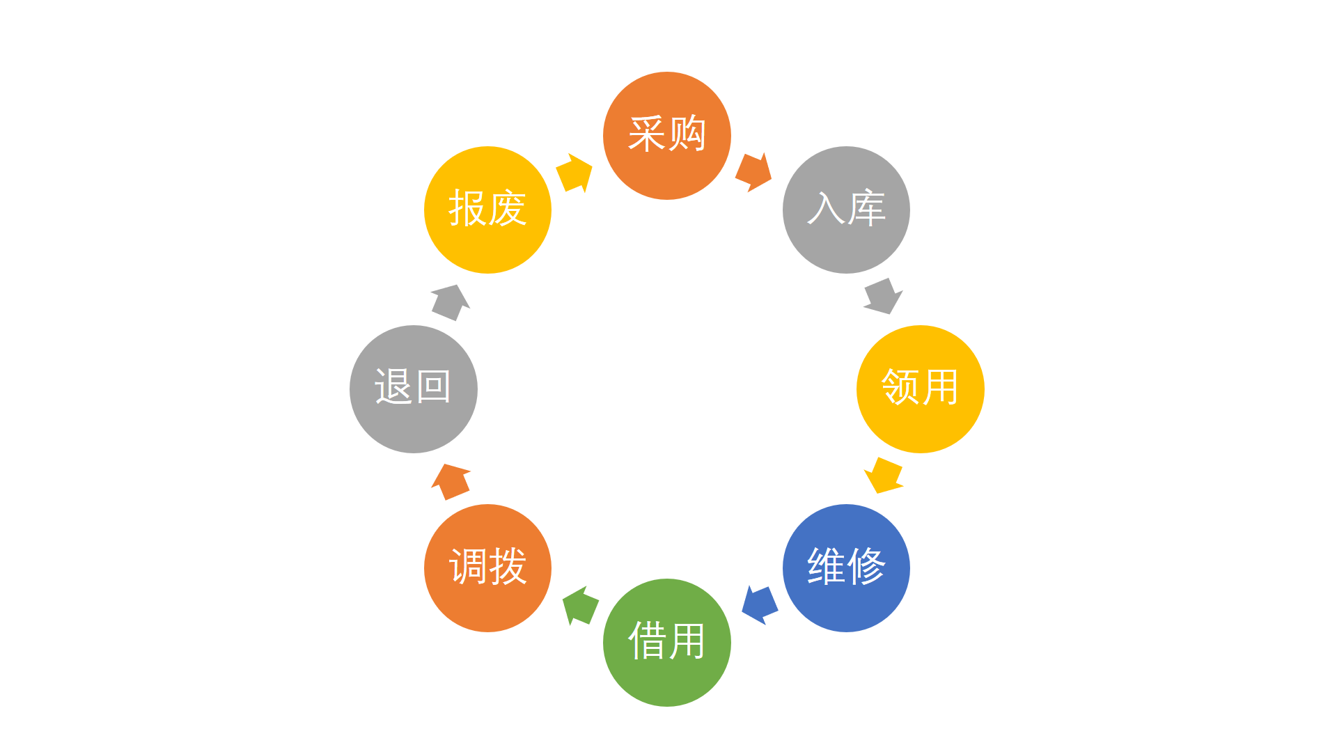 维修、借用、调拨到退回、报废的全生命周期管理。其中的软件许可可管理多种不同类型的软件许可,并将软件许可绑定到具体