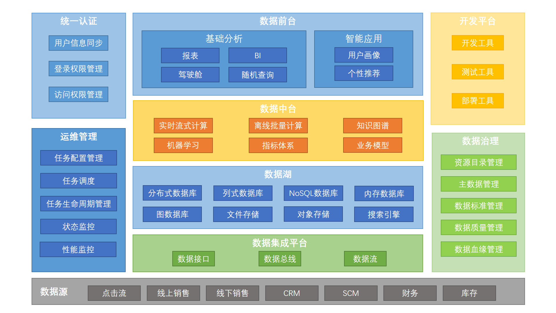 善善数大数据商业智能平台定位于大数据服务平台,对接各种业务数据库、数据仓库和大数据平台,进行加工处理、分析挖掘与可视化展现;